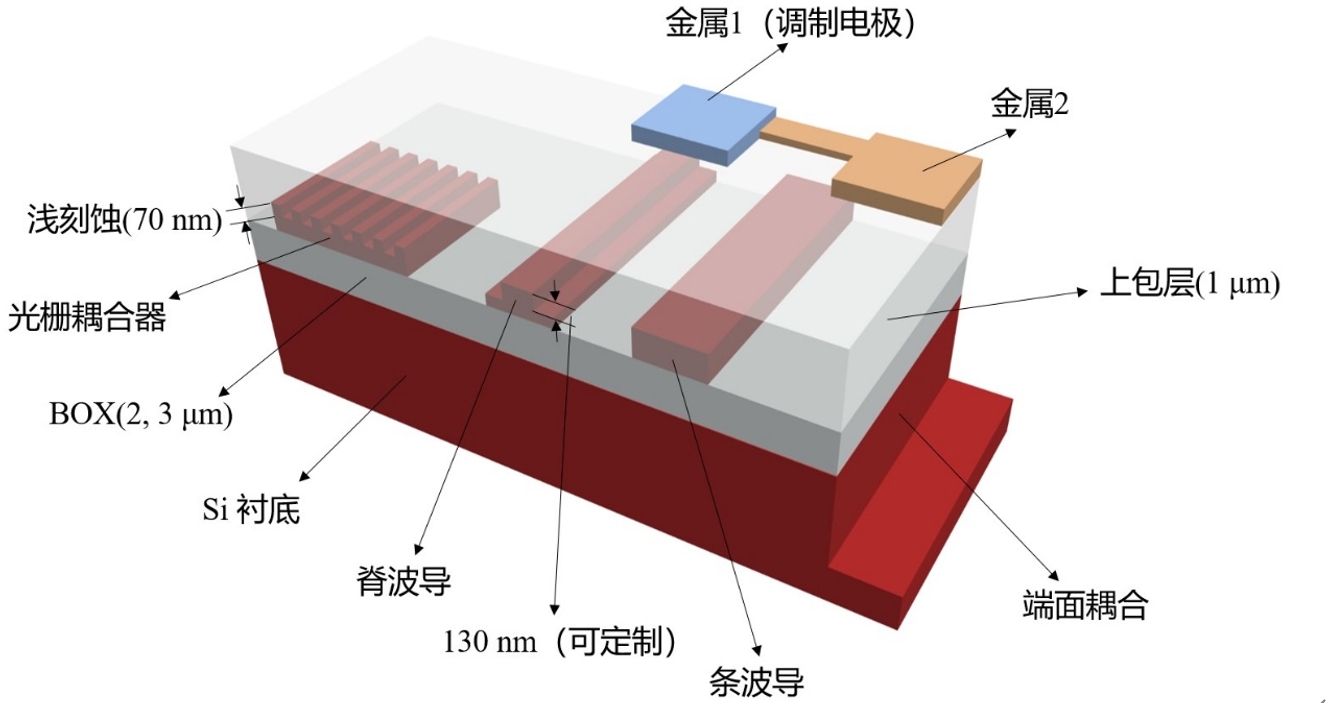 平台现有硅基有源/无源器件PDK工艺库,具备硅基光波导器件的标准工艺加工能力,同时也支持硅基、氮化硅和铌酸锂器件定制化加工。