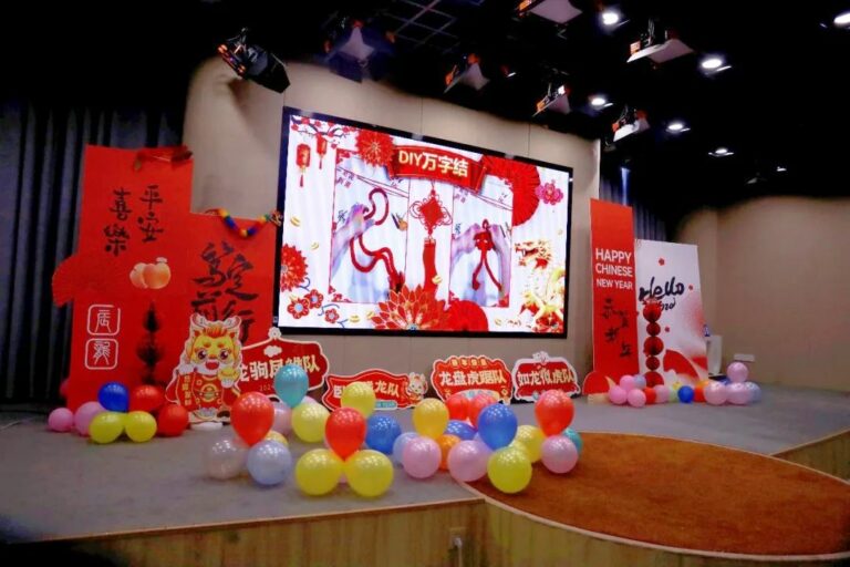 作为会议正式开场前的暖场活动,提前到场的教职工们开始跟随屏幕上的视频演示制作自己专属的年味手工——吉祥万字结。无论是绳子交错间如蟠曲的今年生肖龙的外形,还是“结”这个蕴藏着力量、和谐的字眼,中国结一直是华夏人民对美好的寄托,是团结浪漫、吉祥幸福的象征,也编织着对未来的不懈追求和美好祝福。