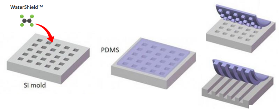1. 可在气相环境中对硅片、玻璃片等半导体兼容和生物兼容的衬底基片的高深宽结构进行表面修饰改性,获得非常均一且单一分子层薄膜的疏水表面、亲水表面和特定官能团功能性表面。