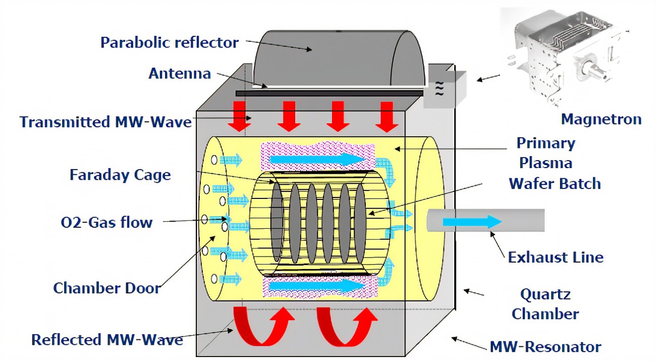 微波等离子体去胶机,主要用于对各类光刻胶进行化学性的干法去除、基片清洗。由于化学性刻蚀的工作方式,可实现对衬底的损伤较低的效果。