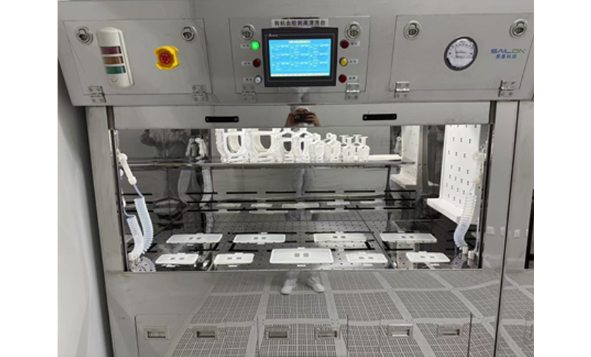 设备配备不同尺寸的两套槽体, 往槽体加入相应的有机试剂,对样品进行对应的浸泡工艺,可以选择打开超声功能增强去胶或者剥离效果, 通过丙酮试剂去除光刻胶,之后通过使用异丙醇或者无水乙醇进一步清洗,然后通过去离子水去除残留的有机试剂,最后通过氮气枪对样品进行吹干。