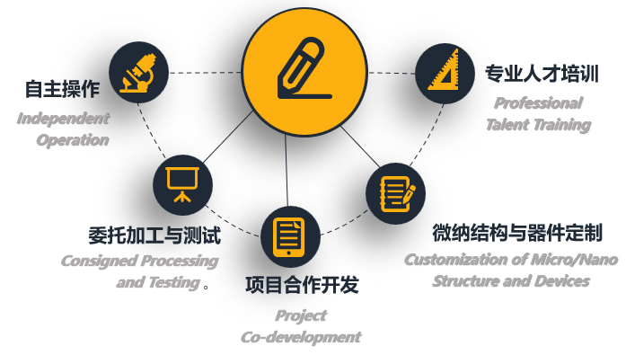 为科研单位及中小型科研公司提供微纳加工产品的流片与测试环境,助力产品开发与技术验证。